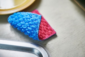 بافت توری p fiber این محصول ظروف را بدون خش انداختین پاک می کند.
